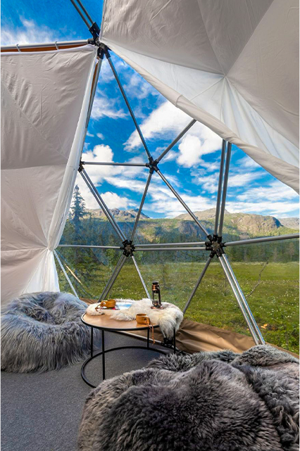 Nordfjelladomen er et stort luksustelt med sengeplass til 4 personer.